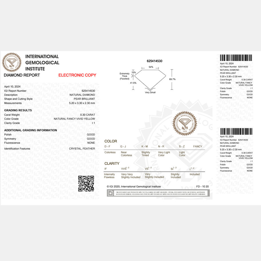Natural Fancy Vivid Yellow - 0.30 Carat - IGI Diamond