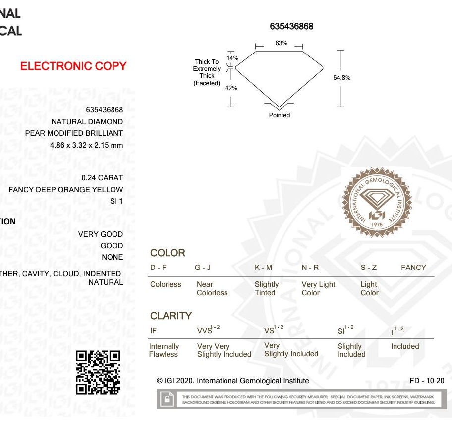 Fancy Deep Orange Yellow - 0.24 Carat - IGI Diamond
